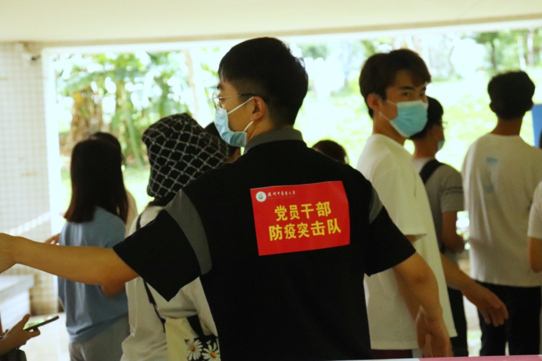 前一天深夜,学校按照疫情防控属地管理要求,安排于6月5日大学城校区开展全员检测核酸。学校党委第一时间部署工作,统筹调配,党委书记张建华、校长王伟现场指导工作,全面动员基层党组织和广大党员充分发挥战斗堡垒和先锋模范作用,把师生的健康当成最大实事,将党史学习教育激发出来的精神斗志转化为工作动力,让党旗在疫情防控第一线高高飘扬。