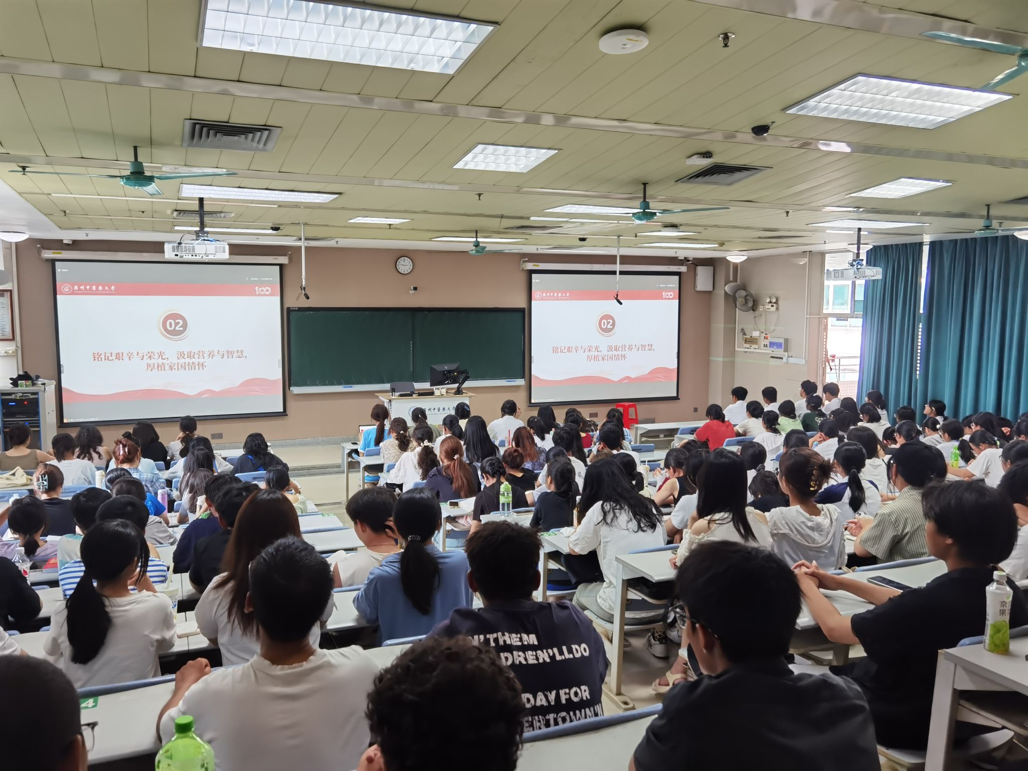 “我校培养的学生,历来有扎实的基本功,业绩是一流的!”在与同学们讲授学校百年来艰辛的创业史和波澜壮阔的发展史时,陈文锋动情地说。他围绕“为党育人、为国育才、医者仁心、大爱无疆、传承精华、守正创新”六个关键词,向同学们讲述百年校史,分享黄耀燊、罗元恺、邓铁涛、刘仕昌、李国桥、靳瑞、叶欣、张忠德等榜样故事,以及从1924年正式开学到如今学校成为中医药文化对外传播、展示中华民族现代文明重要窗口的发展历程,指出学校的百年校史就是中华民族近现代史的一个缩影,百年校史就是我们自信的来源。广中医始终与国家同呼吸、与民族共命运、与时代齐奋进,始终保持发展中医药事业的自信、耐力和定力,走出了一条建设“中国特色,世界水平”一流大学的奋斗之路。