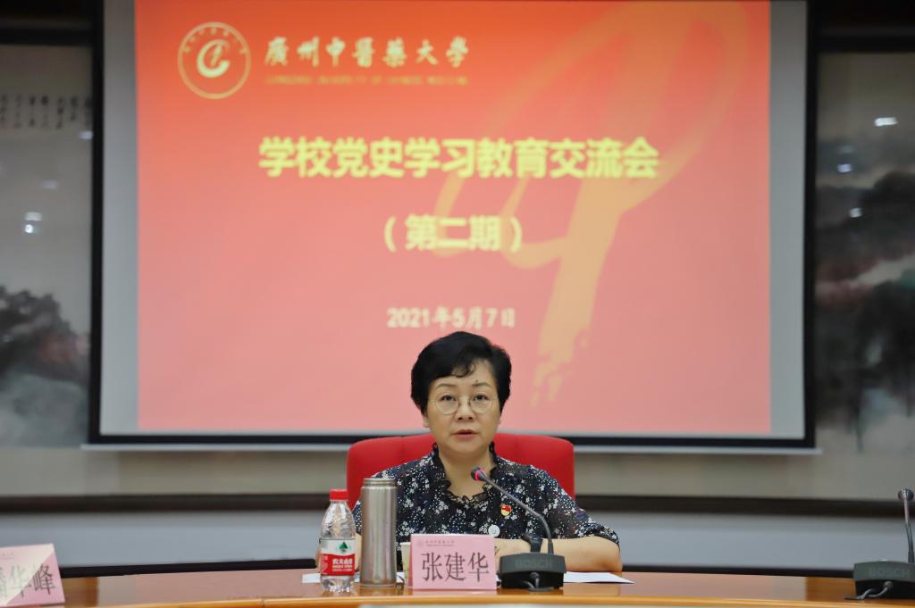 张建华对推动学校党史学习教育持续走深走实作出具体部署。她指出,检验党史学习教育开展得实不实、推进得深不深,关键要看是否做到“学史明理、学史增信、学史崇德、学史力行”的要求,是否达到“学党史、悟思想、办实事,开新局”的目标。她要求,学习要深入,各二级单位党委(党总支)、直属党支部要切实把党史学习教育紧紧抓在手上,坚持领导干部带头与党员全面学习、自学与集中专题学习、规定动作与自选动作相结合,把学习教育抓紧抓实抓到位,树立正确的党史观,用好指定学习教材,准确把握党的历史发展的主题主线;调查研究要深入,既要把本单位本部门摆进学校改革发展大局深入思考亟需解决的问题与办法,也要深入了解学校师生需求,要让广大师生在党史学习教育中受教育、得实惠;“我为群众办实事”要实在,要认真梳理“我为群众办实事”的清单,详细列出时间表与路线图,一项一项地推进、一项一项地落实,切切实实将党史学习教育与学校巡视整改结合起来、与学校改革发展结合起来、与增强师生幸福感获得感结合起来,激励全校师生鼓起迈进新征程、奋斗新时代的精气神。