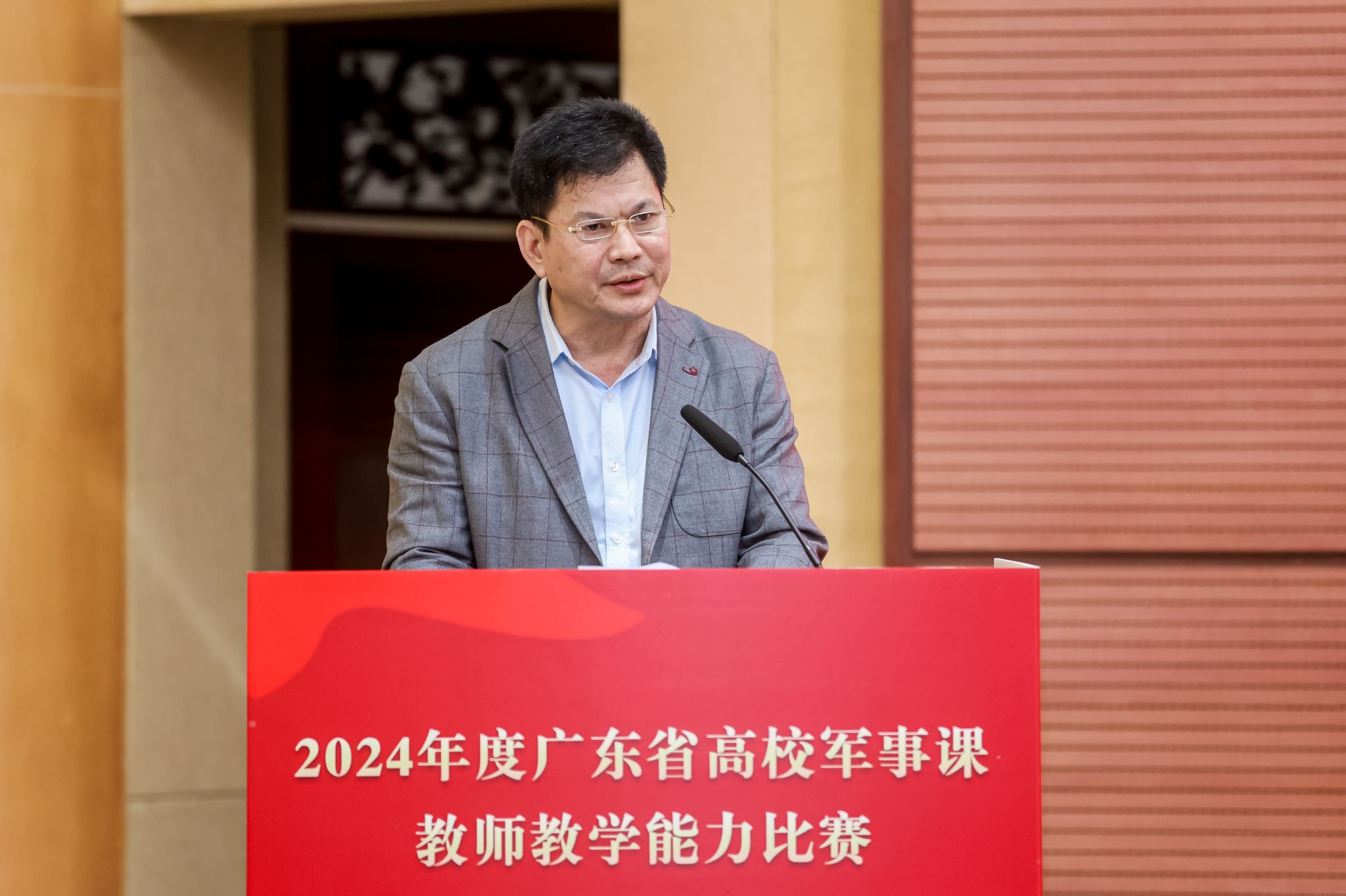 郭鸿代表学校对上级主管部门的关心和指导表示衷心感谢,并向全体参赛教师、专家评委和工作人员致以诚挚问候。他表示,一百年来,广中医人厚植“上医医国、先觉觉民”的家国情怀,秉承“厚德博学、精诚济世”的校训精神,为国家富强、民族振兴和增进人民健康福祉做出了重要贡献。他指出,国防教育是高校大学生思想政治教育的重要途径和方式,是落实立德树人根本任务的重要体现。学校坚持把牢新时代国防教育要求,将大学生国防教育纳入教育教学计划,统筹安排、一体推进,不断加强军事课程建设,促进军事训练改革创新,推动“大国防”与“大思政”有机融合,切实形成三全育人合力。学校将以此为契机,认真总结赛事经验,将赛事成果转化为教学“养分”,为广大军事课教师提供一个更好的展示和交流平台。通过持续加大军事理论的教学投入,精研教学、创新方法,让国防教育深入人心,让莘莘学子胸怀报国志向,为强军梦凝聚磅礴力量!