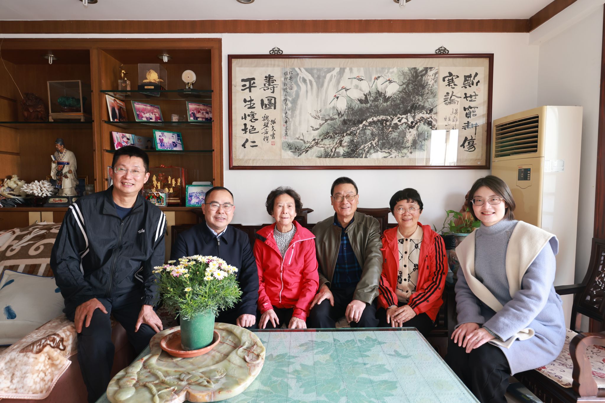 慰问农工党王培训教授(左三)、纳惠玲教授(左四)