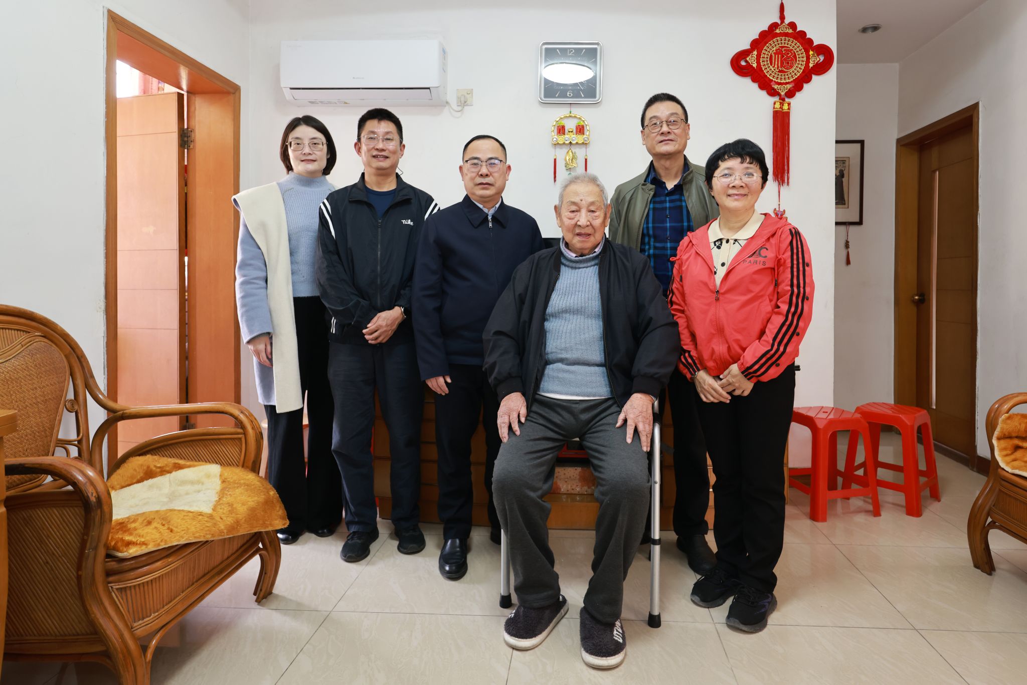 在94岁的田传瑶家中,杨忠奇与田老亲切交谈,仔细询问他术后的身体状况和生活情况,并叮嘱基层委要更加关心老同志的健康,主动提供帮助。2024年田老住院时,相关部门和领导就曾前往探望,体现了组织对党员的关怀。