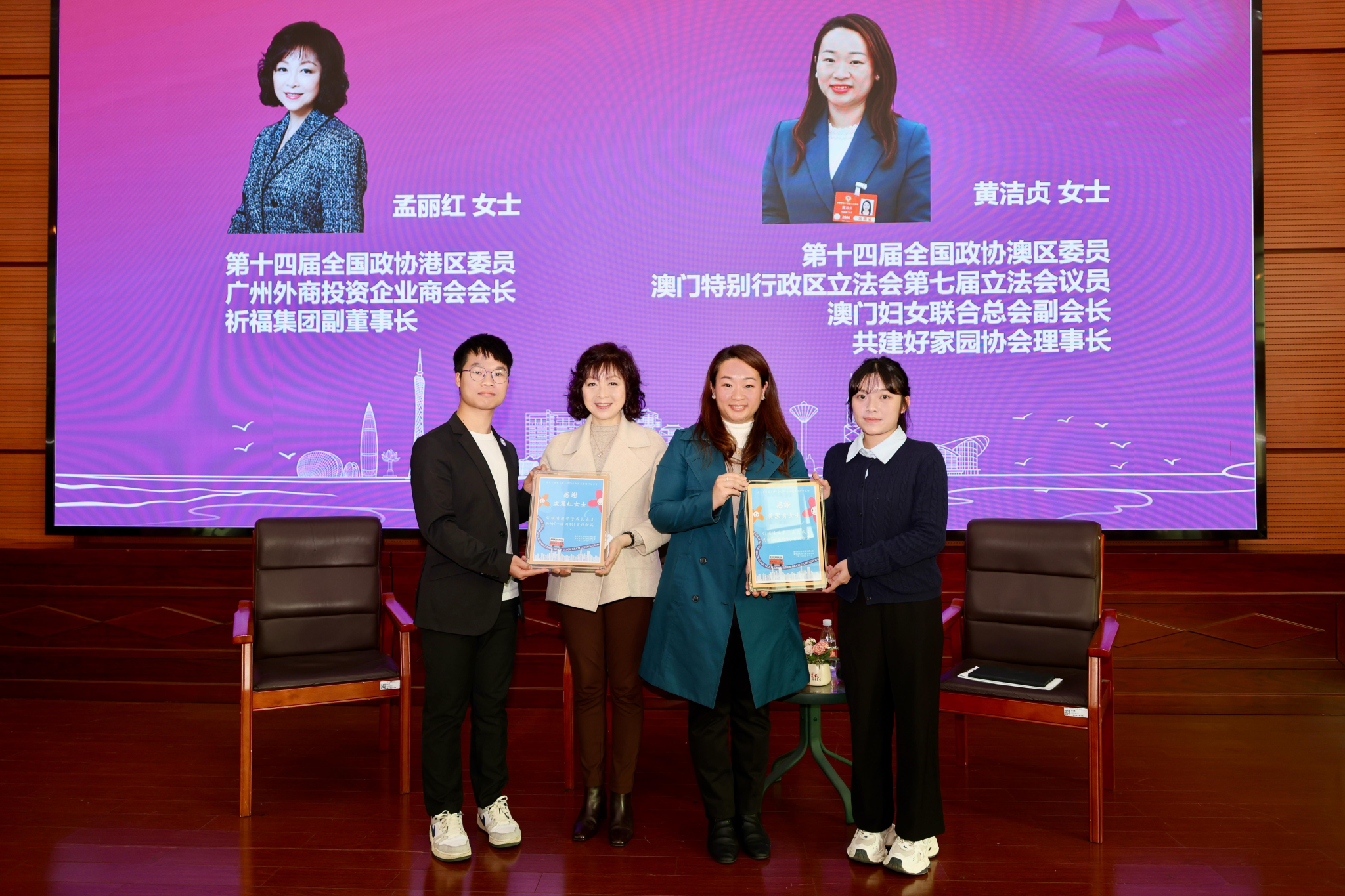 分享会尾声,学生代表上台向孟丽红委员、黄洁贞委员敬送感谢状,对两位委员百忙之中为ac米兰官网中文网站港澳学生开展全国两会精神分享会致以诚挚谢意。