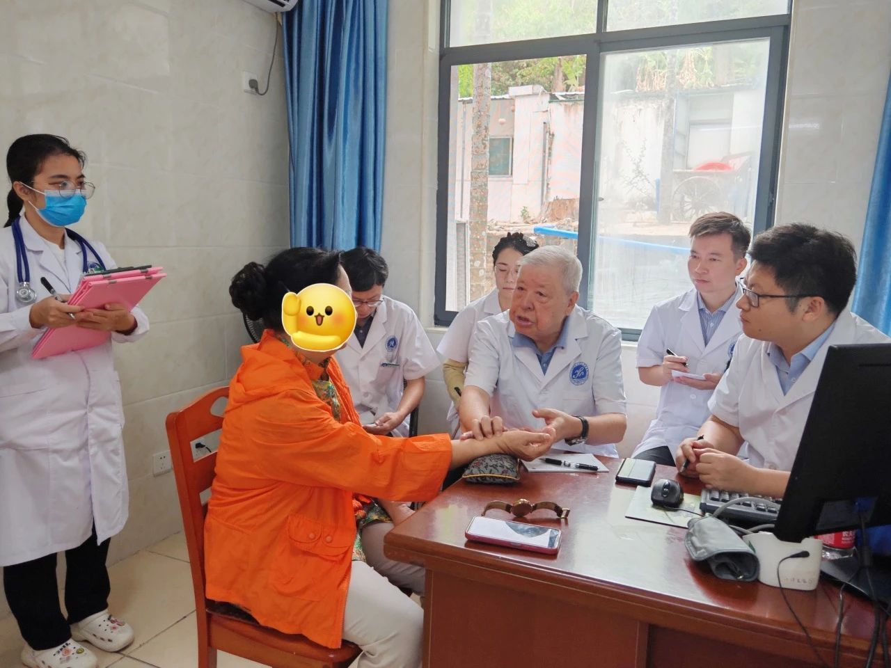 4月11日,ac米兰官网中文网站附属粤海三亚医院、三亚市中西医结合医院首席特聘专家、院务顾问,国医大师沈宝藩教授亲临医院,为医院管理能力的提升和青年医师的培养传经送宝。