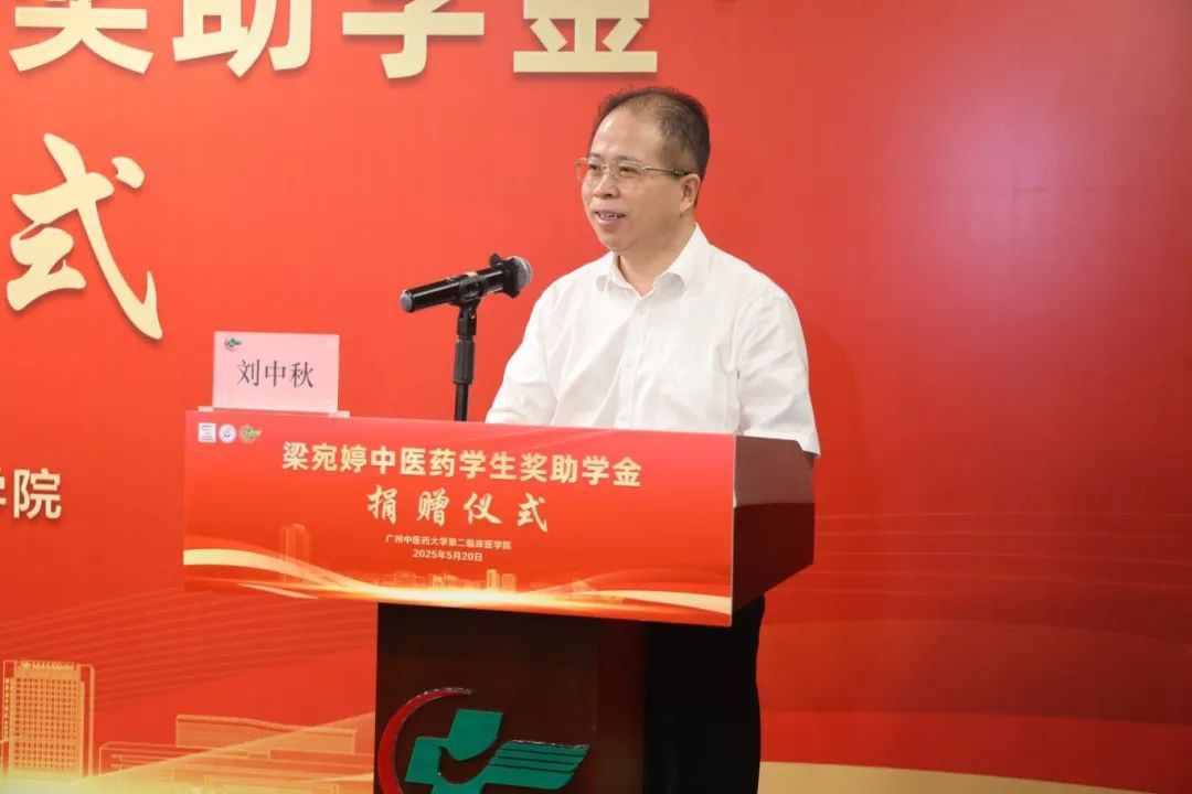 刘中秋向捐赠方致以崇高敬意和诚挚感谢。他表示,“梁宛婷中医药学生奖助学金”是对中医药人才培养的深切关怀,是对“立德树人、培根铸魂”教育使命的有力践行。他指出,第二临床医学院肩负着临床实践与理论教育深度融合的重任,要以此次捐赠为契机,坚持立德树人,筑牢人才培养之基;深化资助内涵,构建成长成才之梯;推动守正创新,勇攀中医药高峰。他寄语学子们,要牢记“大医精诚”的训诫,努力成为“通经典、强临床、重人文”的复合型人才。