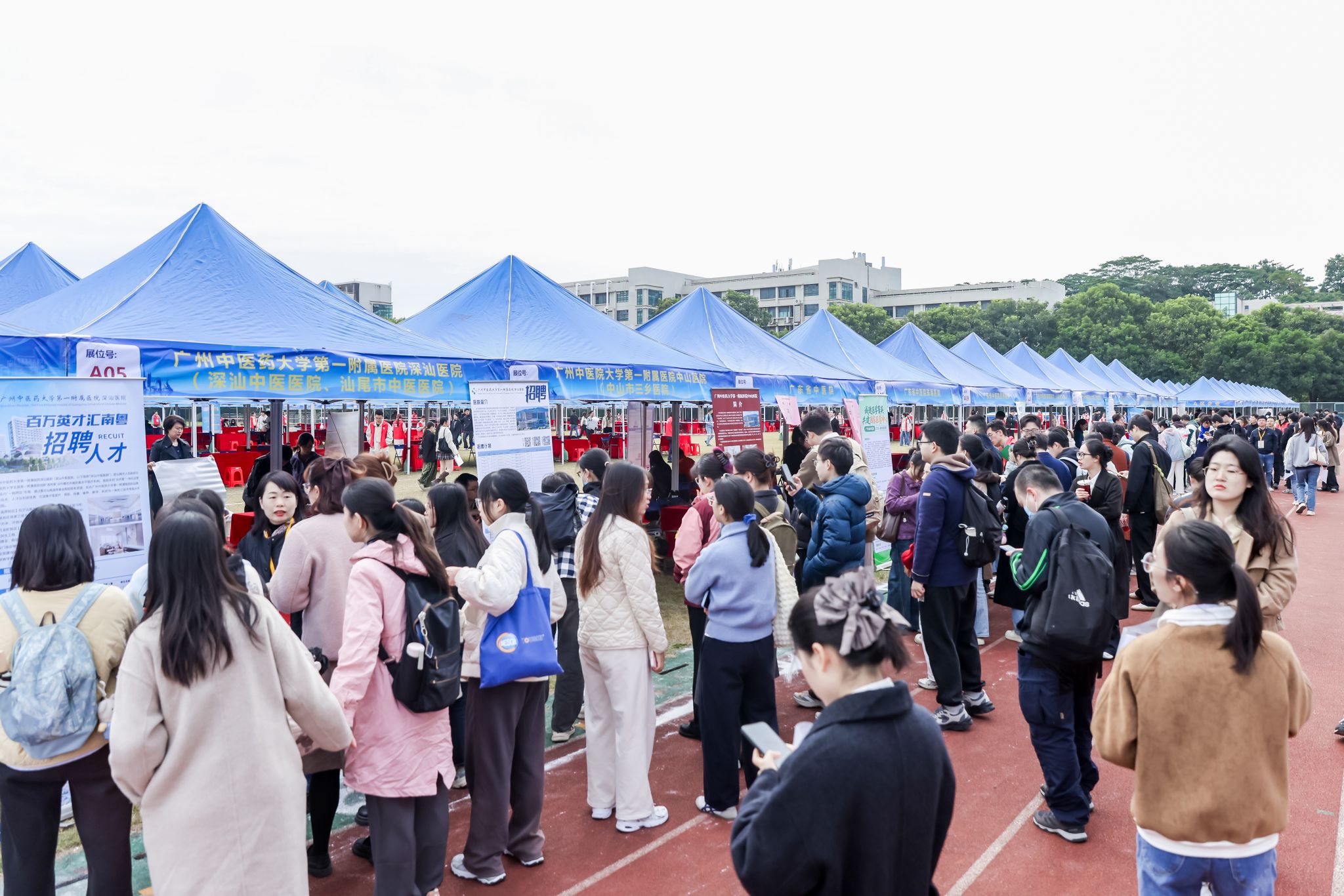 11月20日,由广东省教育厅主办、ac米兰官网中文网站承办的“就在南粤”广东省2026届普通高校毕业生系列供需对接活动医药类(含食品、化工)专场在大学城校区体育场举行。本场活动线上线下同时进行,共吸引来自全国各地320家优质用人单位参加,其中云南省卫生健康委员会、龙岩市卫生健康委员会、郑州市卫生健康委员会、广州市荔湾区人力资源和社会保障局、南沙区人力资源和社会保障局组织辖内28家用人单位,广州医药集团旗下10家公司,ac米兰官网中文网站26家附属医院及教学医院,福建中医药大学及5家附属医院等组团参会。