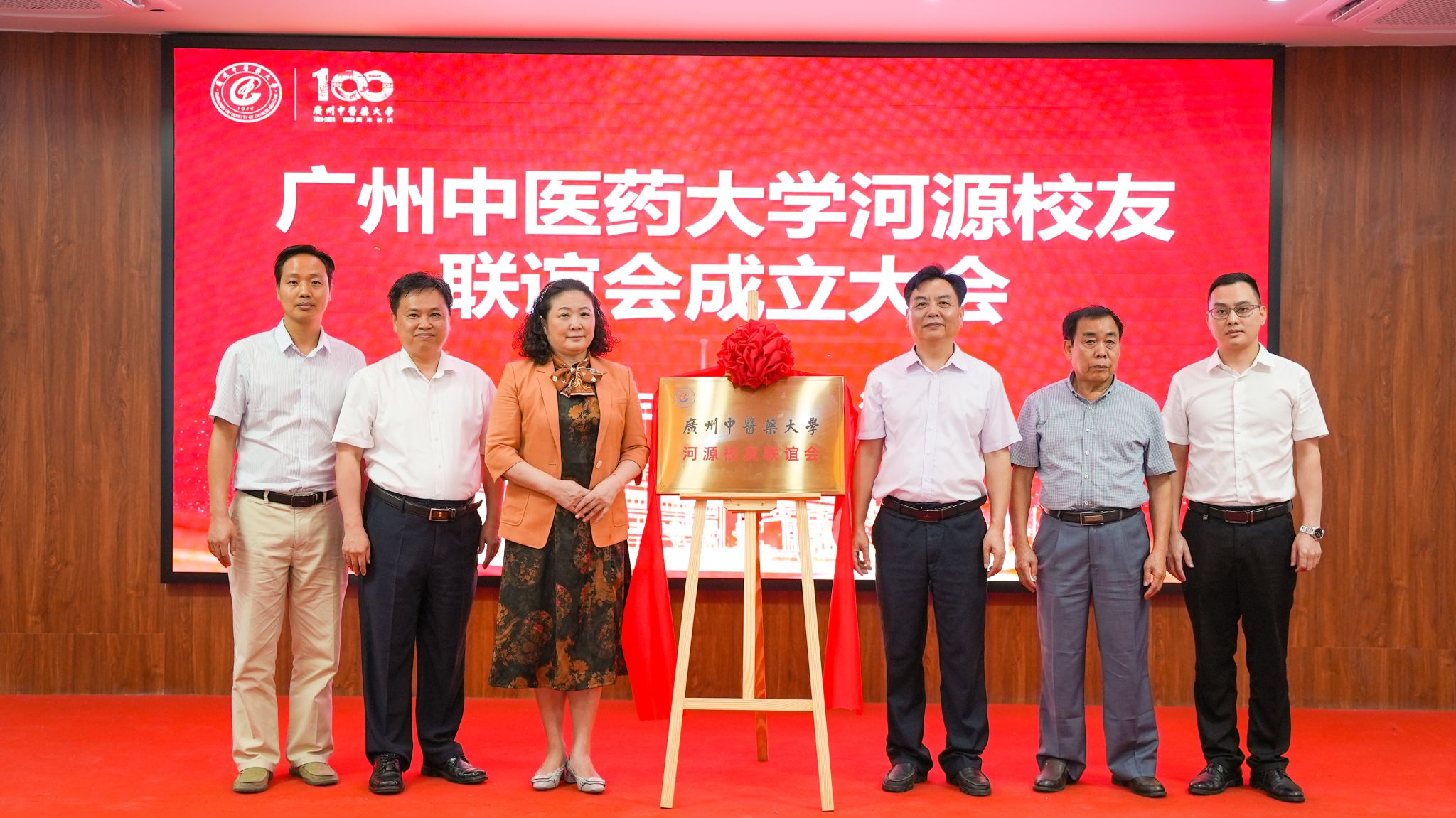潘华峰副校长、人力资源部詹若挺部长、校友会任长报、校友联谊会副会长肖新李、校友联谊会顾问、省名中医张赞中和东源县中医院副院长彭志华共同为ac米兰官网中文网站河源校友联谊会揭牌。