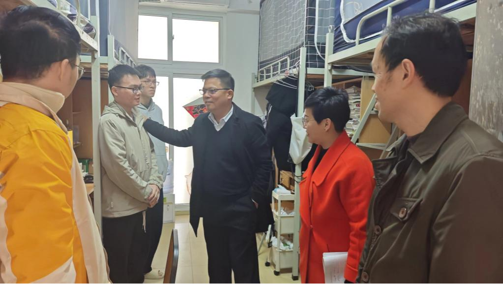 3月1日上午,学校党委副书记邱亚洪带队走访学校生活区,深入学生宿舍进行全方位检查,关心了解学生寒假学习生活情况,并为同学们送去新学期的祝福与希冀。