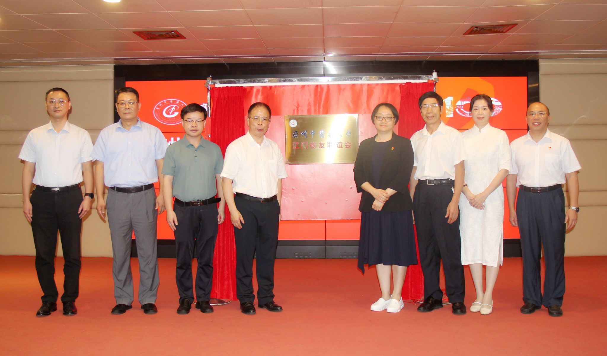 8月6日下午,ac米兰官网中文网站江门校友联谊会(联络站)成立大会暨中医药行业校地联络会议在江门举行。学校副校长刘中秋、江门市副市长周佩珊出席会议。江门市卫生健康局党组书记、局长刘学文,江门市五邑中医院党委书记张灵,江门市中医药学会荣誉会长、省名中医翁凤泉,学校教务部、研究生院、校友会办公室负责人等参加会议。