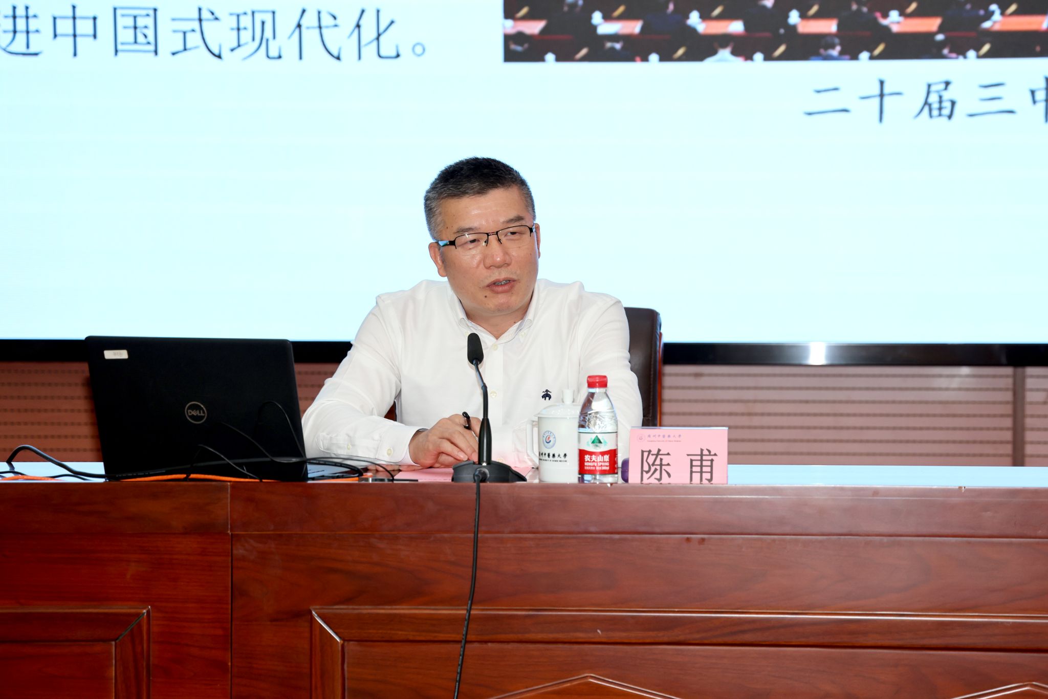 陈甫作《新时代进一步全面深化改革的新征程——深入学习贯彻党的二十届三中全会精神》专题辅导报告。他围绕习近平总书记在二十届三中全会上的重要讲话和全会通过的《中共中央关于进一步全面深化改革、推进中国式现代化的决定》,结合当前的国内外形势,引用丰富的数据、翔实的案例,全面深入阐释了党的二十届三中全会的重大意义,深刻解读了全会精神的核心要义、丰富内涵和实践要求,提出了深刻把握进一步全面深化改革的香港使命,在国家改革开放进程中做出香港新贡献。辅导报告既有政治高度和理论深度,又对全校师生准确把握新时代全面深化改革的重大意义和部署要求,进一步坚定推进中国式现代化的信心具有重要的指导意义。