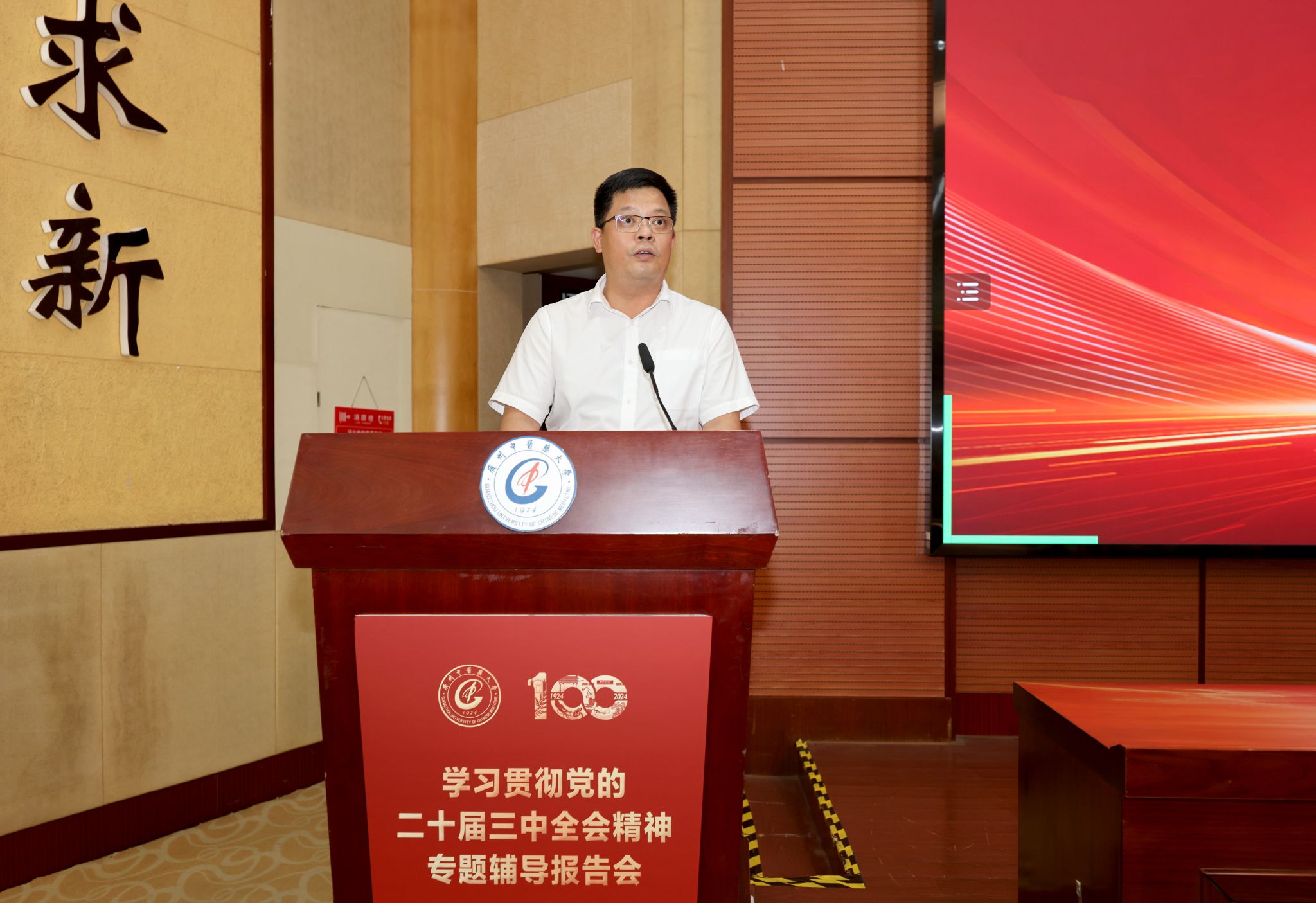 邱亚洪在主持报告会时指出,党的二十届三中全会是在以中国式现代化全面推进强国建设、民族复兴伟业的关键时期召开的一次十分重要的会议。全会明确了到2035年的阶段性改革目标、分领域具体改革目标和时间表、路线图、任务书,为学校高质量推进“双一流”和高水平大学建设提供了重要遵循。邱亚洪强调,学习好、贯彻好党的二十届三中全会精神,是当前和今后一个时期的一项重大政治任务。我们要把思想和行动统一到习近平总书记重要讲话精神和全会精神上来,把全会精神落实到学校改革发展的各项事业上来,以扎实举措成效加快建设教育强省、中医药强省,书写中医药传承创新发展和中国式现代化广东新篇章。