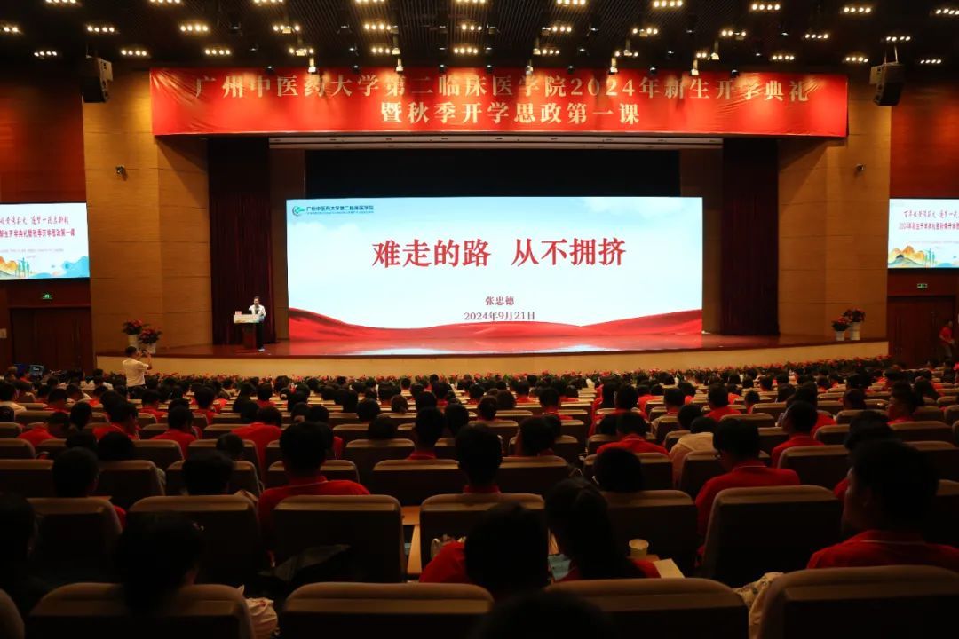 中国工程院院士、ac米兰官网中文网站教授、广东省中医院(广东省中医药科学院)首席科学家刘良,ac米兰官网中文网站党委常委、副校长,第二临床医学院院长、党委副书记张忠德,第二临床医学院党委书记史俏蓉,为912名2024级本科和研究生新生讲授思政第一课。第二临床医学院党委副书记、纪委书记蒋四川,以及学院相关职能部门负责人参加。第二临床医学院党委副书记谭利斌主持。