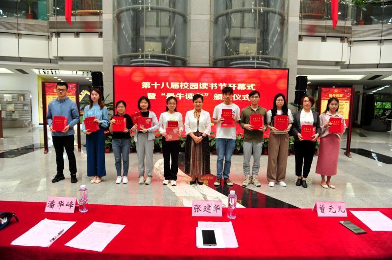 4月23日,在校园读书节开幕式上,张建华等学校领导为近两年的“最牛读者”颁奖。