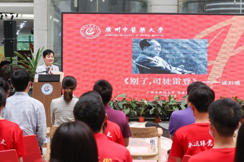 广中医党委书记张建华分享的篇目是《别了,司徒雷登》,她为同学们详细解读了该经典之作的时代背景和深刻内涵,并结合个人经历与当前时事娓娓道来,告诫同学们要认清当今严峻的国际形势和时代赋予年轻人的使命,鼓励同学们多读书、多读红色经典,增强做中国人的志气、骨气、底气。