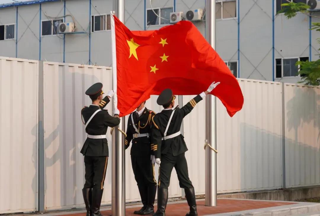 深技大学子在新校园里举行隆重的国庆升旗仪式