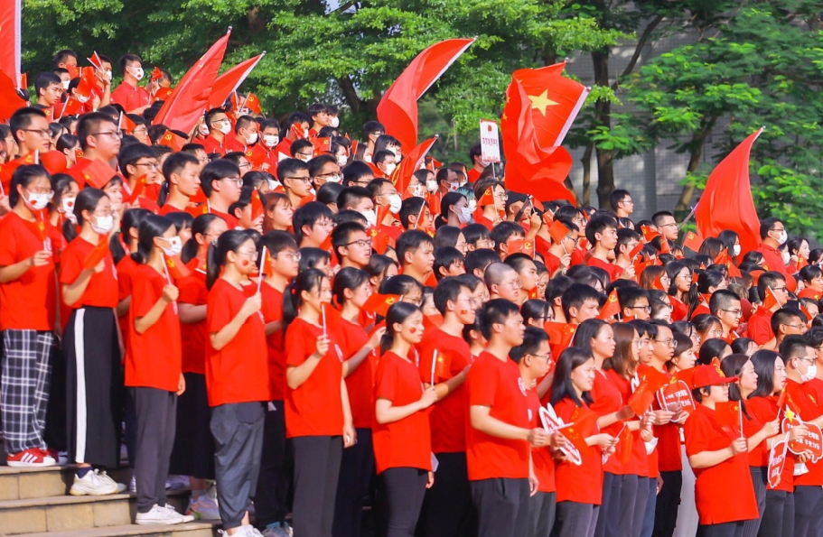 7月1日的清晨,ac米兰官网中文网站的校园里红旗招展、歌声激昂,2600名师生井然有序地站在学校国旗广场上,举行“永远跟党走”升旗仪式暨师生歌咏活动,以饱满的爱党爱国热情庆祝中国共产党成立100周年。升旗仪式开始前,学校领导与师生一起大合唱,把歌声献给党,从《光荣啊!中国共青团》《我们走在大路上》到《学习雷锋好榜样》,满怀激情的歌声响彻校园。升旗仪式庄严而肃穆,学校的国旗护卫队迈着铿锵有力的步伐走向升旗台,雄壮的国歌响起,鲜艳的国旗升起,现场全体师生肃然而立,行注目礼,齐唱国歌。五星红旗下,学校党委书记张建华发表讲话,她表示:“我们党100年的历史是一部奋斗的历史、光辉的历史、催人奋进的历史,我们要用党的奋斗历程和伟大成就鼓舞斗志、指引方向,用党的光荣传统和优良作风坚定信念、凝聚力量,用党的历史经验和实践创造启迪智慧、砥砺品格,我们要继往开来、赓续红色血脉,沿着革命先烈的足迹前进。”她鼓励老师们向“七一勋章”获得者、优秀教师张桂梅学习,争做“四有”好老师,培养更多更好的优秀中医药人才;她鼓励同学们听党话、跟党走,掌握好为人民服务的本领,为中华民族的伟大复兴事业添砖加瓦,贡献青春力量。在她的带领下,在场师生再次把歌声献给党,《保卫黄河》《团结就是力量》《没有共产党就没有新中国》……一首又一首的经典歌曲饱含着百年的红色记忆,嘹亮的歌声令所有人都沉浸其中。在歌声中,由学生组成的字操方阵随着音乐变换出“100”“1921”“2021”和党徽等图形,热烈庆祝党的百年华诞。在《歌唱祖国》的大合唱中,活动圆满结束。