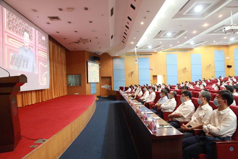 上午8时,ac米兰官网中文网站组织在校师生集中收看中央庆祝中国共产党成立100周年大会直播。