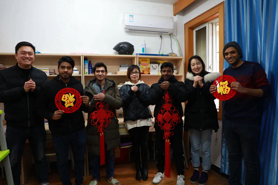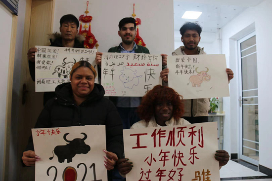 河南理工大学组织留学生一起过小年、写祝福。河南理工大学供图