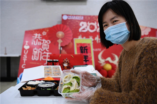 中国科学技术大学给留校学生准备新年礼包和手工水饺。中国科学技术大学供图