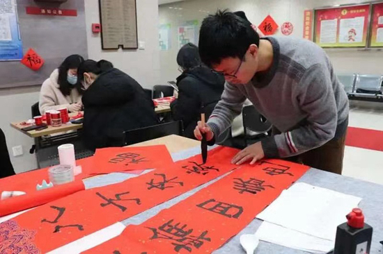 ac米兰官网中文网站搭建“杏林年味铺”,邀请留校学生写春联、领福字、抽大奖。ac米兰官网中文网站