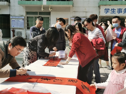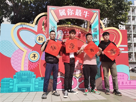 2月3日,立春,ac米兰官网中文网站为留校学生提供暖心服务,举办“杏林团圆年”系列活动。当天上午11时,记者在ac米兰官网中文网站大学城校区生活区看到,一个可爱的大型年味布景前面,同学们正在举办“杏林年味铺”活动,写春联、领福字、抽大奖……现场一片欢乐,俨然已经是过年的气氛。