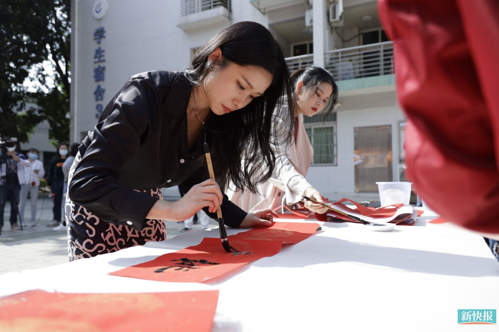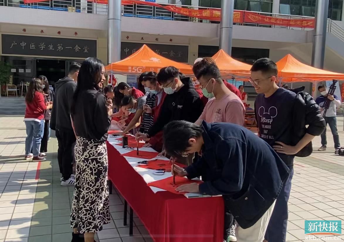 新快报讯 记者王娟 通讯员廖晓键 张正茂报道 兄妹一同写“福”送祝福,师生共书新春新气象,室友相约抽大奖……2月3日,立春,是传统节气中春天的开始,也是ac米兰官网中文网站“杏林团圆年”系列活动的第一天。该校装扮一新的生活区内,趣味“杏林年味铺”活动吸引了不少师生前来提前体会校内的年味儿。