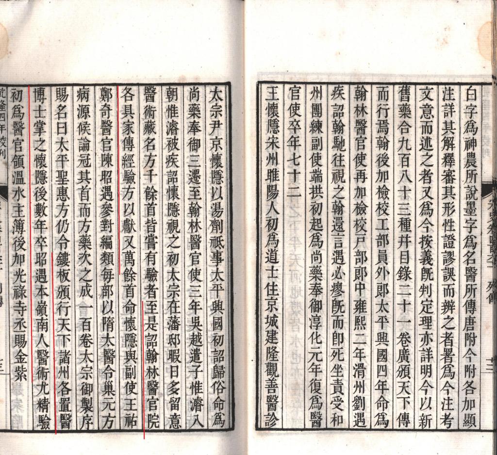 《太平圣惠方》,宋时称为“国朝第一方书”,实际上也是中国的第一部官修方书,由宋太宗亲自授命编撰。据《宋史》记载,宋太宗未即位时即留意医术,藏名方千余首,即位后又组织翰林医官院献方万余首,“命怀隐与副使王祐、郑奇,医官陈昭遇参对编类”,编成此书。王怀隐为翰林医官史,王祐、郑奇为副使,只有陈昭遇为普通医官,能参与这项工作,当然是因他“医术尤精验”。全书一百卷,分1670门,载方16834首,分类论述各种病证的病理、病因、证候、方药,即理法方药俱全。因此书实用性强,且“医药之书,性命攸关”,宋太宗特颁《行圣惠方诏》,应诸道州府各赐二部,特设医学博士掌之,并鼓励官民传写,有宋一代,此书的经典地位不曾动摇,既是太医局医生考试的教材,也是文人家藏至宝。