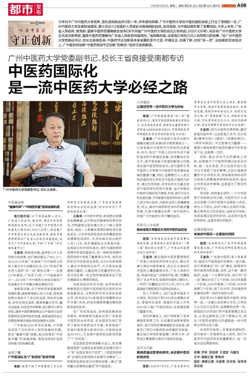 南都:走好新时代广东中医药高质量发展之路,广中医还有哪些需要达成的目标和使命?