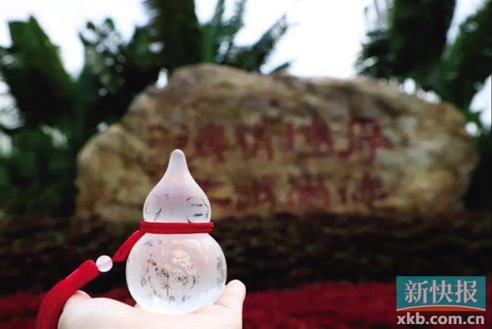 这款“玲珑悬壶”选用晶莹剔透的水晶为材,结合中国风吉祥纹样设计,通体温润如玉,光线照射下来,顷刻光芒四射。据介绍,壶上绘有“苁蓉”“远志”“熟地”“当归” 四味具有代表性的中医药材的鲜株植物形态,寓意对毕业生的美好祝愿:苁蓉且不迫,宁静以远志,熟地乃故园,花开自当归。