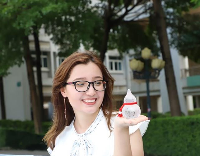 记者留意到,今年的毕业礼物以葫芦为造型,设计优雅、精巧通透。