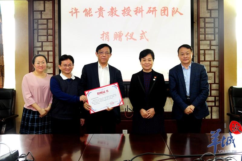 学校党委书记、学校教育发展基金会理事长张建华向团队代表颁发了捐赠证书。她高度赞扬了许能贵教授科研团队回馈学校的善举和对学校事业的支持。
