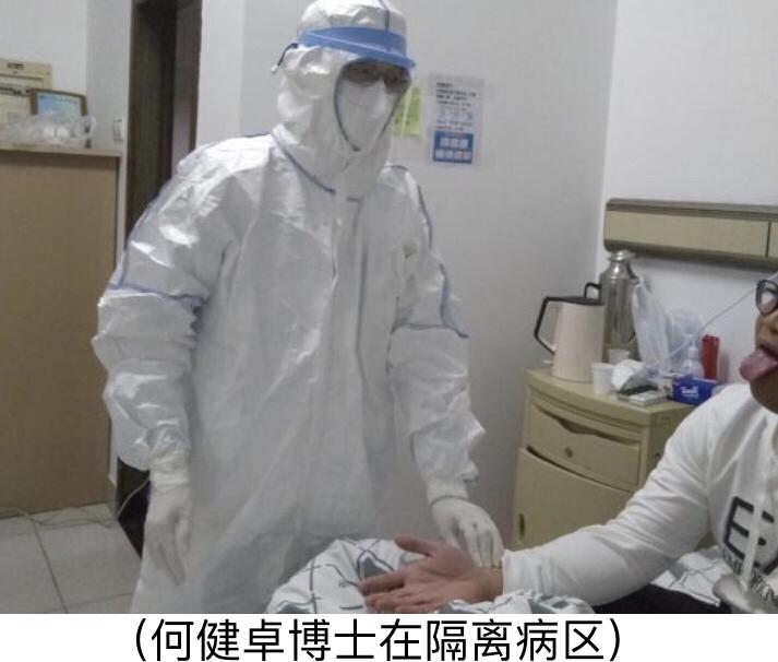1 月 23 日除夕夜,医院迅速组建防治新冠肺炎应急医疗队,并开设隔离病区。何健卓第一时间退掉与家人旅行的机票及酒店,第一个主动请缨加入第一批隔离病区抗疫队伍。
