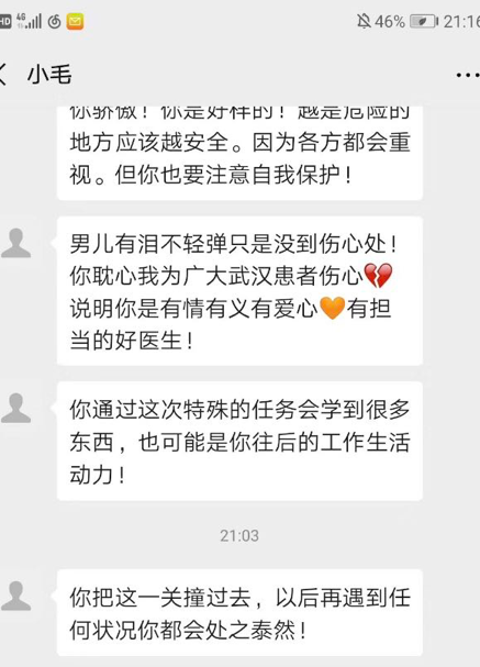 作为一位有着30余年党龄的老党员, 范妈妈耐心地给范鸿儒发了一条又一条的信息,既是作为老党员的鼓励与嘱托,也难隐母亲的担忧。“你要有思想准备,会很累很辛苦!记得每天给我发信息!对病人一定要耐心,温暖!”