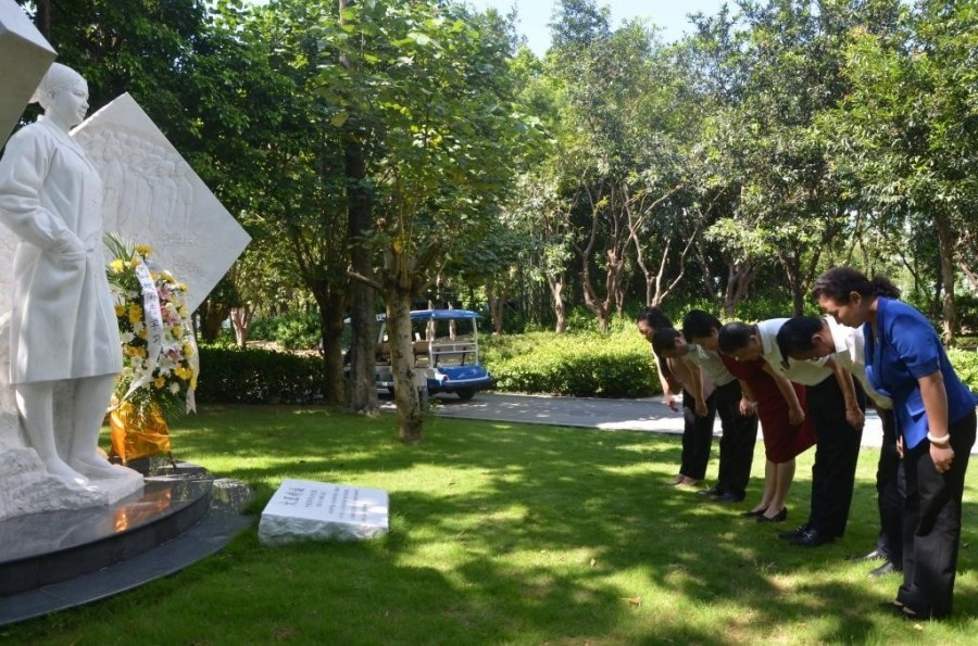 学校领导来到叶欣纪念塑像前献上花篮,凭吊叶欣烈士,向这位抗击“非典”的英雄表达崇高的敬意和深情的缅怀。张忠德回忆起当年他与叶欣搭档并肩抗击“非典”的经历。在这场没有硝烟的战争中,他们不顾个人生命安危,主动承担了对急危重“非典”病人的检查、抢救、治疗、护理工作,一起负责处置危重患者。这些身边的先进典型,体现了卫生与健康工作者的使命担当,也是省中医院鲜明的文化记号。