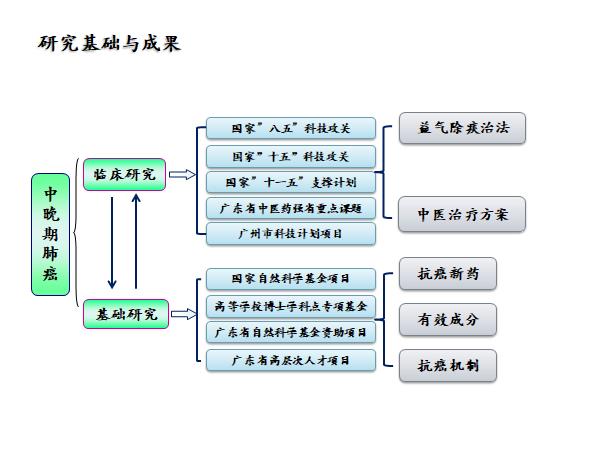 肺癌是癌症中的头号杀手。而中晚期肺癌发病率和死亡率均居癌症之首, 目前国内外主流治疗以化疗和靶向治疗为主,但老年患者和维持治疗阶段的患者对化疗耐受度差,严重影响生存质量。林丽珠教授团队针对上述两大瓶颈问题,在国家科技部“十五”、“十一五”科技支撑项目、国家自然科学基金、教育部博士点博导类基金、重大疑难疾病中西医协作试点项目等10余项国家级项目支持下,历经11年的研究创建起中晚期肺癌中医综合治疗的新方案和新理论,突破了主流医学治疗瓶颈,整体提高了中晚期肺癌诊疗水平,使患者平均住院费用降低1.3万元,惠及华南、西南、华中地区广大患者——
