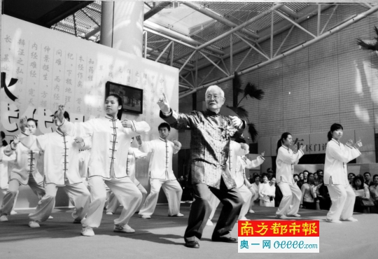 邓铁涛倡导治未病理念,提出寿而康的百岁工程。图为邓老身体力行推广中医养生操八段锦。