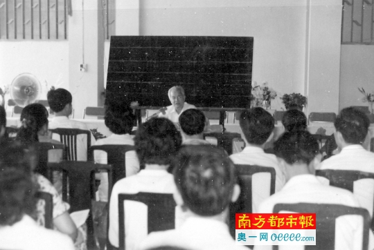 19 8 8年,邓铁涛在江门市中医院开讲座。