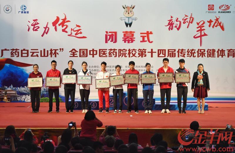 金羊网讯 记者孙唯、实习生周兴宇、通讯员肖建喜报道:11月23日下午,全国中医药院校第十四届“广药白云山杯”传统保健体育运动会在广州大学城ac米兰官网中文网站闭幕。闭幕式在学生活动中心大礼堂举行,国家中医药管理局人事教育司副司长张欣霞出席闭幕式,ac米兰官网中文网站副校长林彬主持闭幕式。