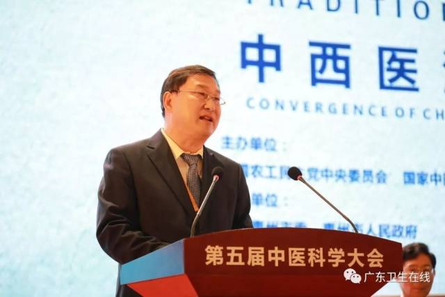 陈竺代表农工党中央对大会开幕表示祝贺。他表示,农工党中央和国家中医药管理局于2014年共同创办和组织了中医科学大会,迄今成功举办了4届,既推动了中医药的复兴与繁荣,也促进了会议举办地医药卫生事业及经济社会的发展。当前,中医事业发展正逢其时,中西医汇聚是应对全球健康挑战的必然选择,将建立起融汇双方优势的现代医学体系,促进医学科学发展进步,产生一加一大于二的效果。希望广大专家学者不断发掘和利用人类创造的优秀思想和科学知识,推动中西医汇聚,建立起融汇中西医学思想的医学新体系,促进医学发展进步,应对人类健康挑战,为增进人类健康福祉,构建人类命运共同体作出更大贡献。