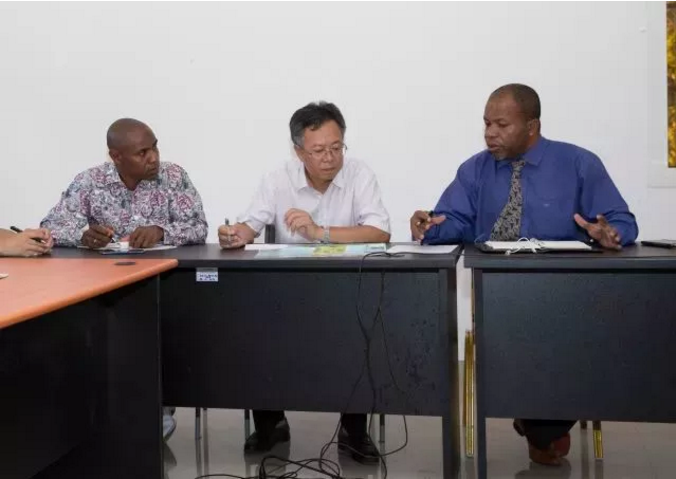 ▲2018年4月18日,在科摩罗大科摩罗岛,ac米兰官网中文网站教授宋健平(中)与当地抗疟项目工作人员开会讨论下一步抗疟工作安排。新华社记者 吕帅 摄