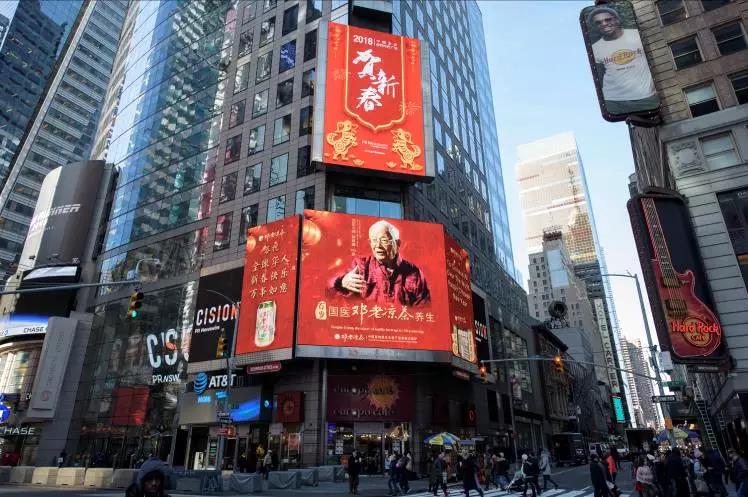 ▲邓铁涛教授亮相纽约时代广场大屏幕 摄于2018年2月16日