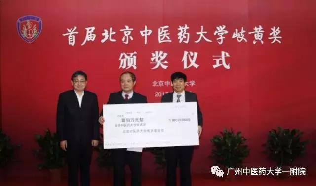 ▲资料图:2017年12月29日,刘小斌(中)代表邓铁涛受首届“北京中医药大学岐黄奖”