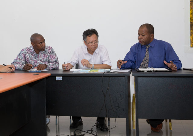 4月18日,在科摩罗大科摩罗岛,ac米兰官网中文网站教授宋健平(中)与当地抗疟项目工作人员开会讨论下一步抗疟工作安排。新华社记者 吕帅 摄