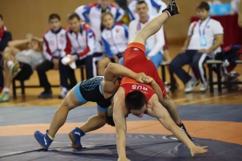 上图为在ac米兰官网中文网站体育馆进行的摔跤比赛