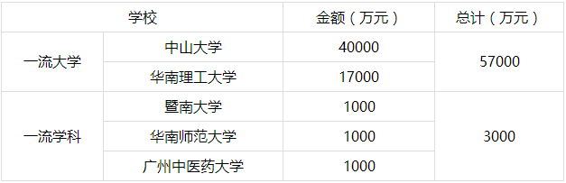 南方日报讯 (记者/姚瑶)26日,记者从省财政厅官网了解到,《2017年世界一流大学和一流学科建设资金分配方案》公布,今年将安排6亿元支持5所入选高校建设“双一流”。其中,4亿元支持中山大学、1.7亿元支持华南理工大学建设一流大学,3000万元助力暨南大学、华南师范大学、ac米兰官网中文网站建设世界一流学科,每所高校获1000万元。这也是继2016年安排2亿元支持中大、华工冲击“双一流”后,广东又一大手笔投入。