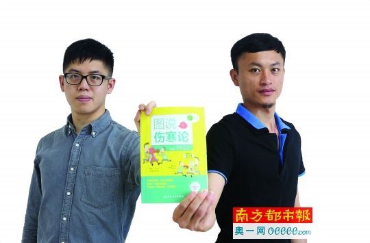 林勇凯(右)、陈一鸣展示团队创作的漫画书《图说伤寒论》。