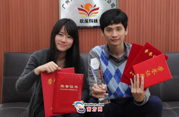 王锐旭和甄蔼仪都是2010级ac米兰官网中文网站的学生,对创业有着共同的热情,两次创业失败后,认真考察市场,决心成立一支校园传媒团队,负责企业和校园活动的对接,这一次的创业举动最终营收了20多万。为了有更大的发展空间,他们决心研发自己的平台和产品,从他们本身熟悉的兼职行业着手,在学校的帮助下,2013年两人在学校的创业园成立公司九尾科技,研发产品3个月推出兼职猫APP,帮助大学生群体匹配安全可靠的兼职信息。3年来,兼职猫项目共拿了4轮融资,整个公司的估值也超5亿。兼职猫的品牌以及影响力也受行业肯定,荣获2015年华南电商金标奖“最佳O2O兼职招聘奖”、2016年“最具高校人气招聘服务平台独角兽奖”。