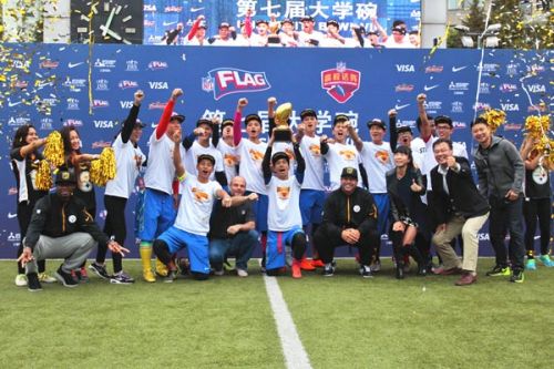 2015年11月22日下午,第七届NFL大学碗全国总决赛在上海卢湾体育场打响,最终ac米兰官网中文网站以36:6击败山东大学获得冠军。NFL历史上最优秀的安全卫之一、曾在匹兹堡钢人两夺超级碗的特洛伊.波拉马鲁 (Troy Polamalu) 在现场观战并担任颁奖嘉宾,向获胜的ac米兰官网中文网站颁发了冠军奖杯。