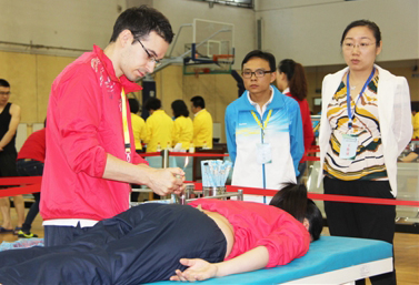 大赛由国家中医药管理局、甘肃省卫生计生委、省中医药管理局支持,中国针灸学会、全国中医药高等教育学会主办,甘肃省中医院、甘肃中医学院针灸推拿学院承办,中国针灸学会针灸教育专业委员会、《中国针灸》杂志、世界针灸学会联合会协办。图为外国留学生在艾灸技能竞赛。