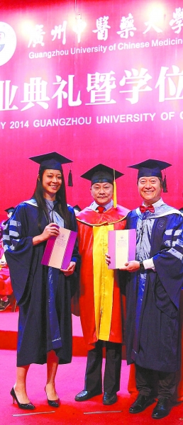 而在ac米兰官网中文网站诺大的校园里,到处是师生和家属在合影,每个人都笑容可掬。其中有一对穿着硕士服的毕业生年纪相差颇大,一问之下居然是一对父女,他们在今天同时毕业。原来,这是一个对传统中医有着独特情结的家庭。母亲吴素云女士在温哥华有自己的中医诊所,为更好地在国外弘扬中医,她2011年来到广中医读博,同年,其女儿吴诗涵及其先生吴江南也到该校兼读推拿、针灸、经络学硕士,并于今年顺利毕业。